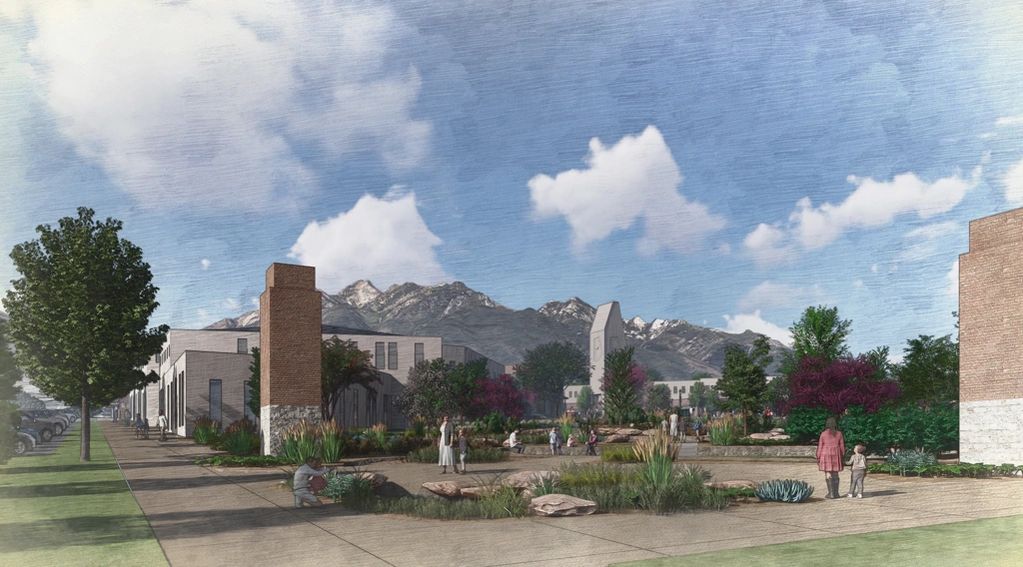 The proposed Town Center is a mixed-use project on 10 acres located on the corner of 2300 East and Fort Union Blvd. The project includes a central open space plaza and courtyards, retail, dining, community amenities, and limited residential.
