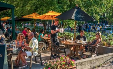 Exceptional dining experiences have been designed to facilitate sidewalk dining facing the street and also facing the gathering space. Buildings have been designed to enable rooftop dining that provides incredible views of the majestic mountains between the canyons as well as views of the valley, views of downtown SLC and the spectacular sunsets over the Oquirrh mounts and the Great Salt Lake.
